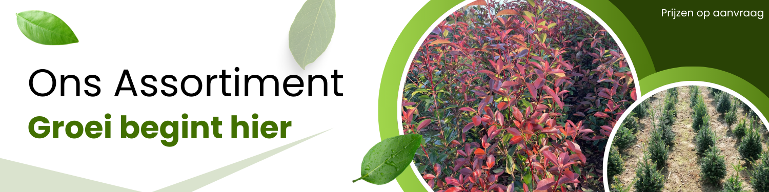 Wij bieden een breed assortiment aan kwalitatieve planten zoals groene hagen tot kleurrijke sierplanten en alles daartussenin. Zowel particulieren als groothandels kunnen bij ons terecht. Bent u op zoek naar één plant of een grote partij voor een project? Wij helpen u graag verder met ons veelzijdige aanbod.