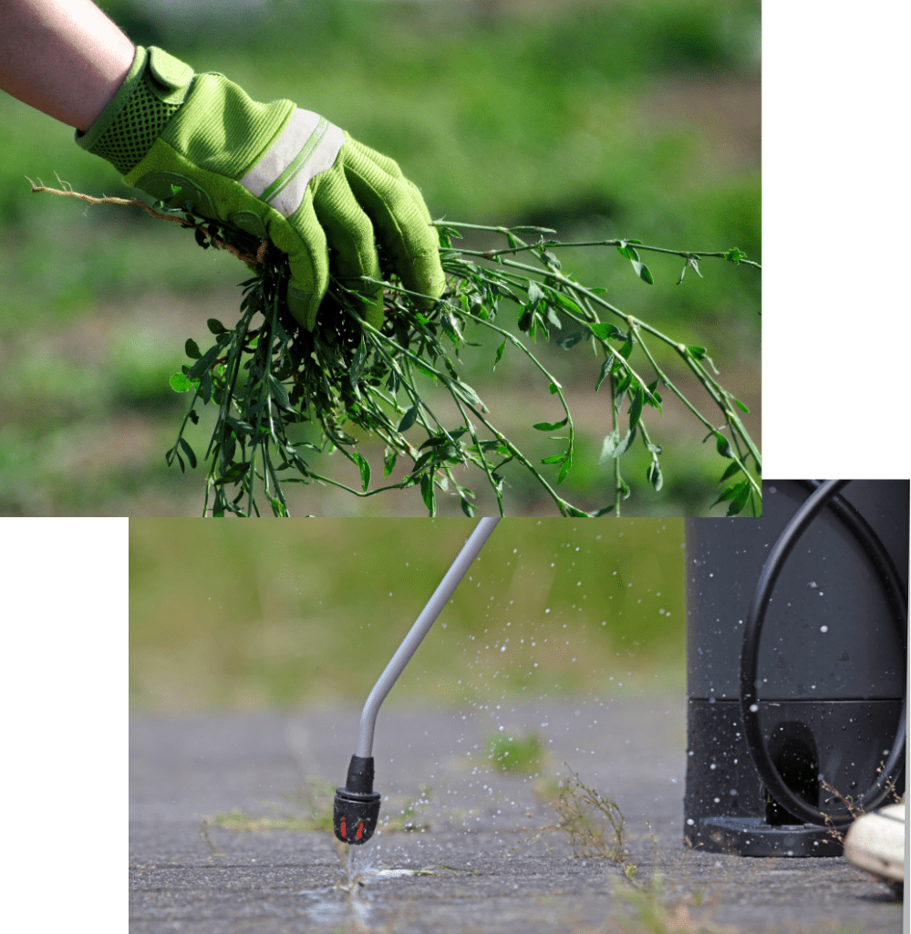 In borders en rondom delicate beplanting verwijderen we onkruid zorgvuldig met de hand. Dit voorkomt schade aan uw gewenste planten en zorgt ervoor dat de borders er weer netjes uitzien. Voor grotere oppervlakken, zoals grindpaden of terrasplaten, maken we gebruik van veilige en milieuvriendelijke sproeistoffen. Hiermee bestrijden we hardnekkig onkruid tot aan de wortels, zodat het minder snel terugkeert.